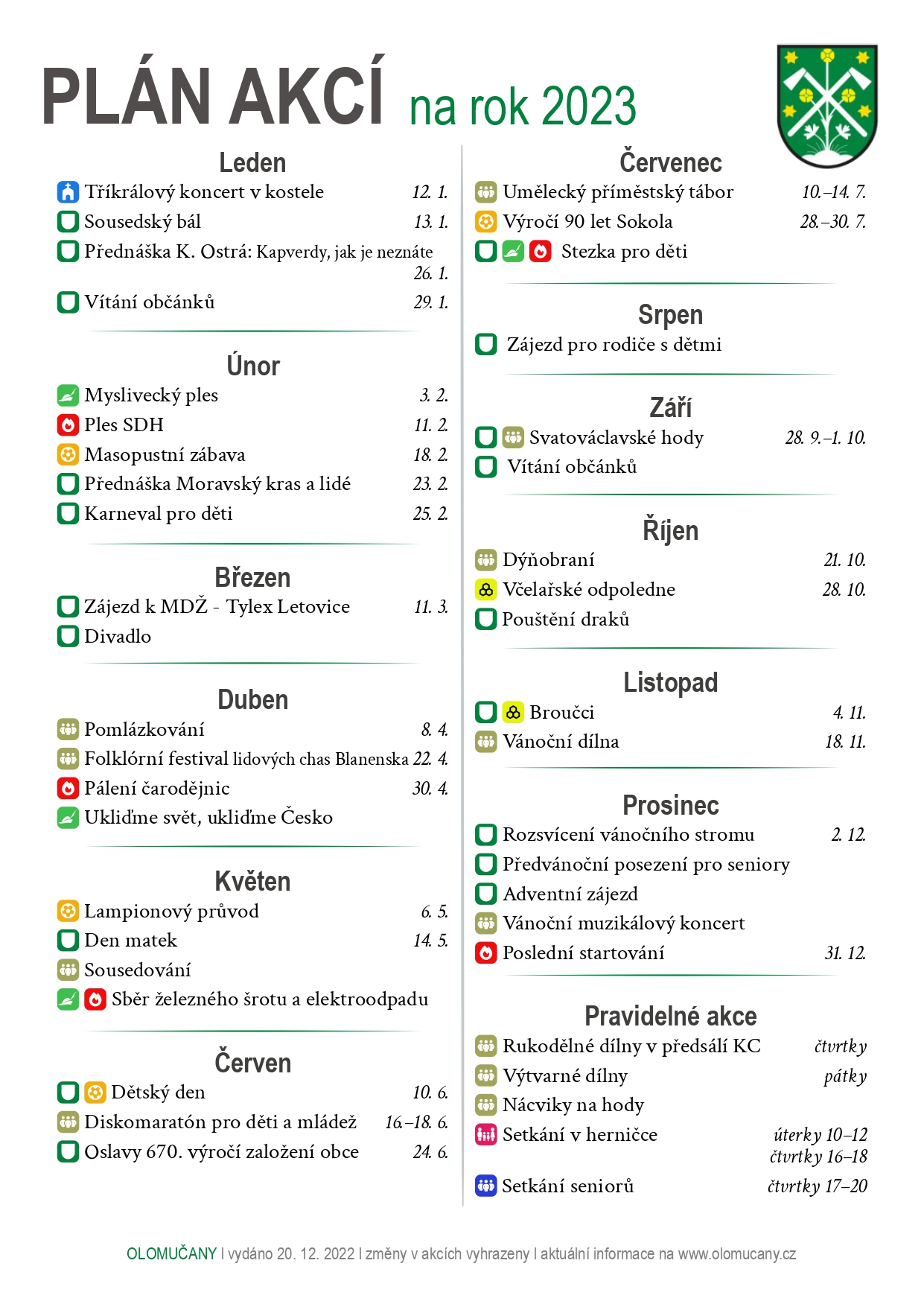 Na této stránce naleznete předběžný plán akcí na tento rok. Tento plán jste obdrželi i do schránek. Pokud ještě nebylo v době psaní tohoto plánu známé datum, uvedli jsme aspoň měsíc konání akce.